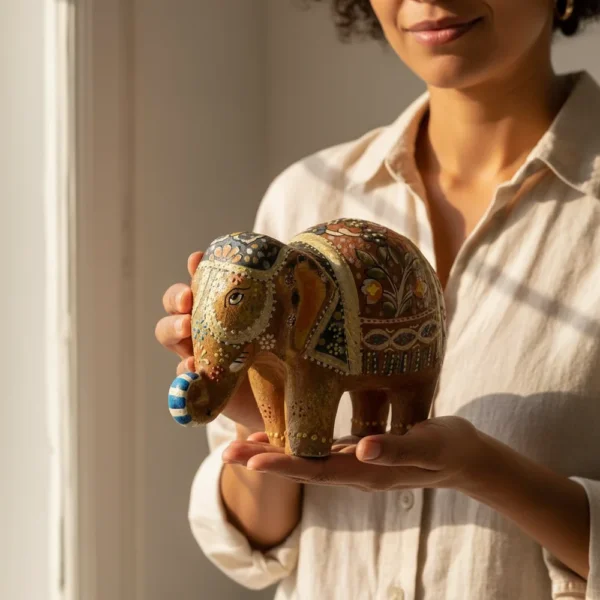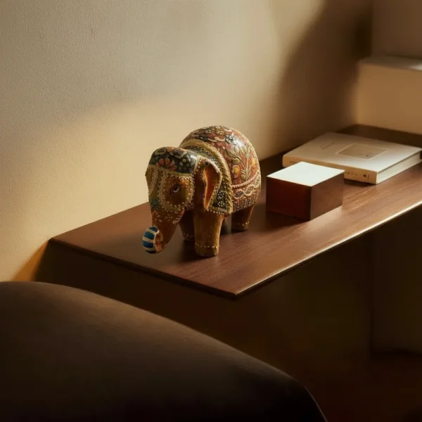 Produzido em cerâmica e finalizado com pintura detalhada, o elefante é um elemento decorativo atemporal, associado à prosperidade, proteção e boa sorte. Seu acabamento refinado valoriza cada detalhe da peça, tornando-a ideal para salas de estar, aparadores, estantes, prateleiras ou ambientes corporativos.